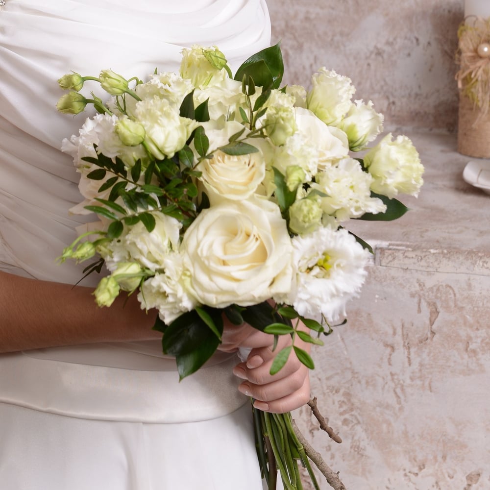 Dieser romantische Blumenstrauß besteht aus einer wunderschönen weißen Rose, die eine Länge von 50cm hat. Sie ist perfekt, um Liebe und Zuneigung auszudrücken. Zusammen mit der Rose schmücken Lisia...