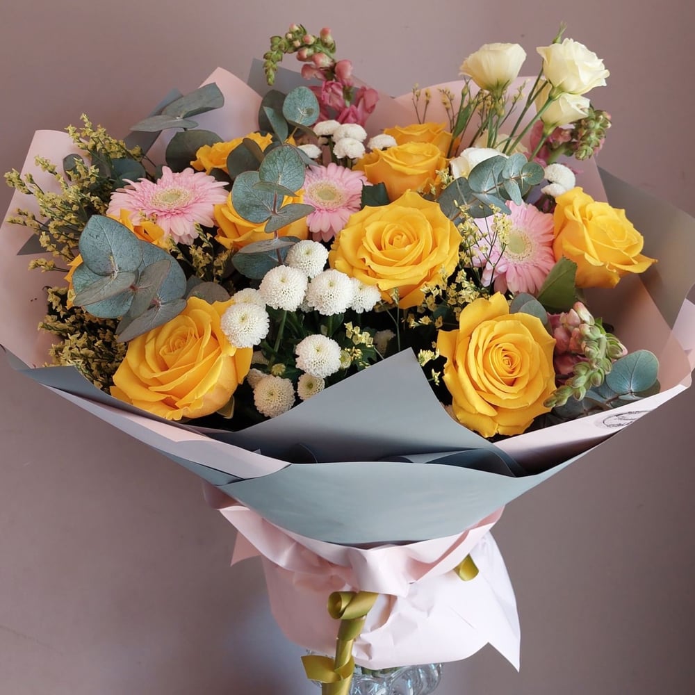 Blumenstrauß 'Flamingo: Rosen, Nelken und Gerbera'
