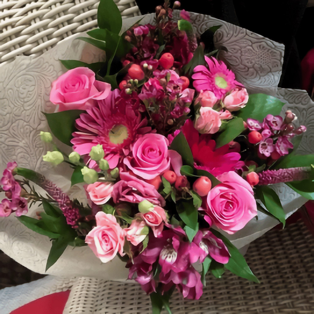 Der Strauß "Angenehmes Kompliment" ist eine Kombination aus Zärtlichkeit und Leuchtkraft, das perfekte Geschenk für jeden Anlass. Der Strauß besteht aus Buschrosen, Lisianthus, Alstroemerien, Gerbe...